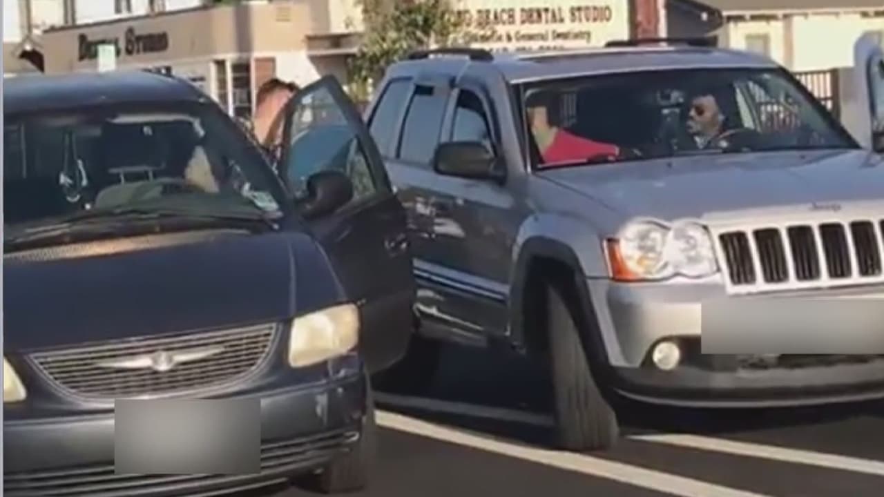 Captan en video el momento en que un conductor amenaza con un cuchillo a los ocupantes de otro auto en Long Beach