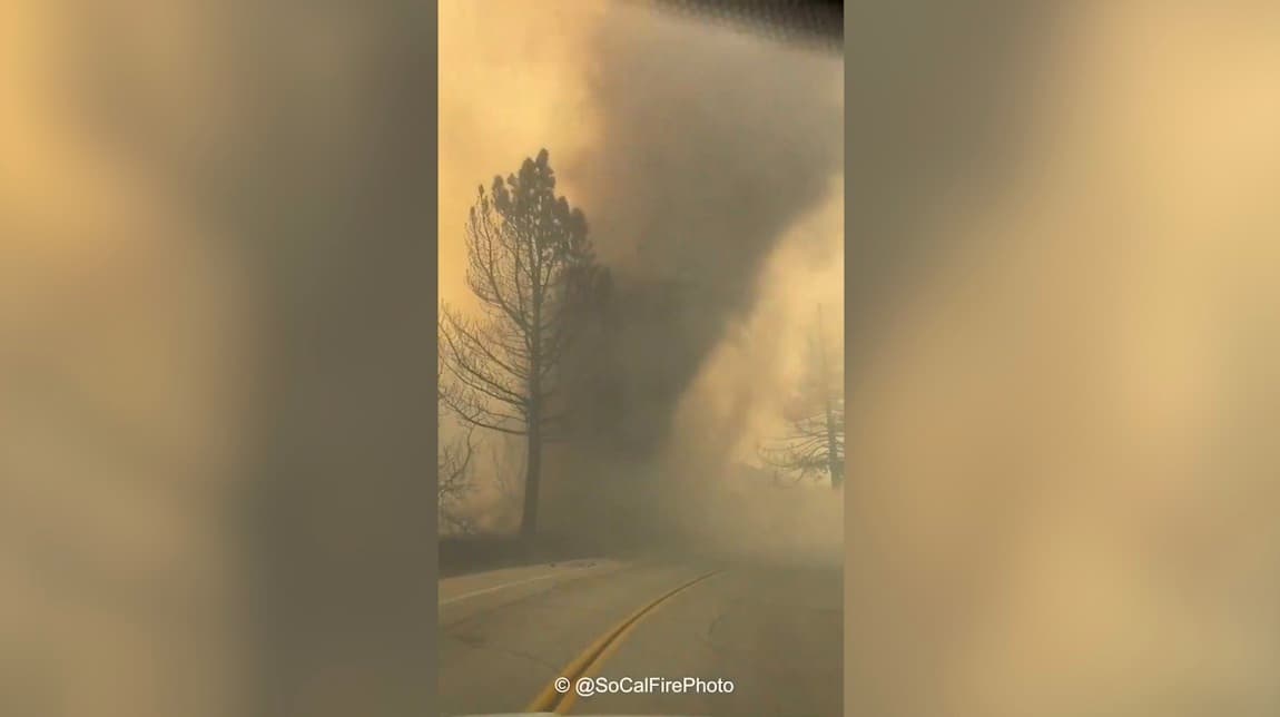 Captan en video un tornado de humo en medio de las llamas del incendio Bobcat en el sur de California