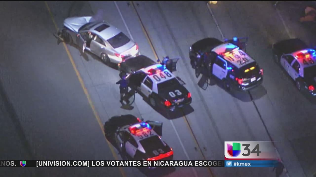 Una persecución a alta velocidad que inició en el área de Exposition Park en Los Ángeles terminó de forma violenta cuando el conductor perseguido impactó su auto contra el muro de contención de la autopista 14 a la altura de Santa Clarita.