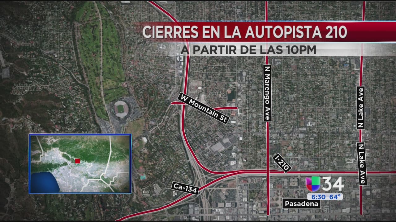 La autopista 210 en sentido Oeste permanecerá cerrada en el tramo desde la avenida Lake y la calle Mountain a partir de las 10:00p.m. de este viernes.