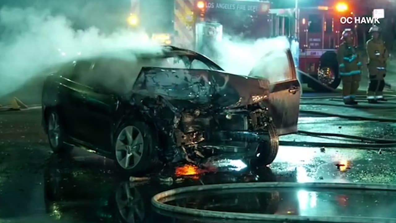El Toyota quedó envuelto en llamas tras el impacto. Todos los ocupantes fueron declarados muertos en la escena, tras apagar el incendio del vehículo.