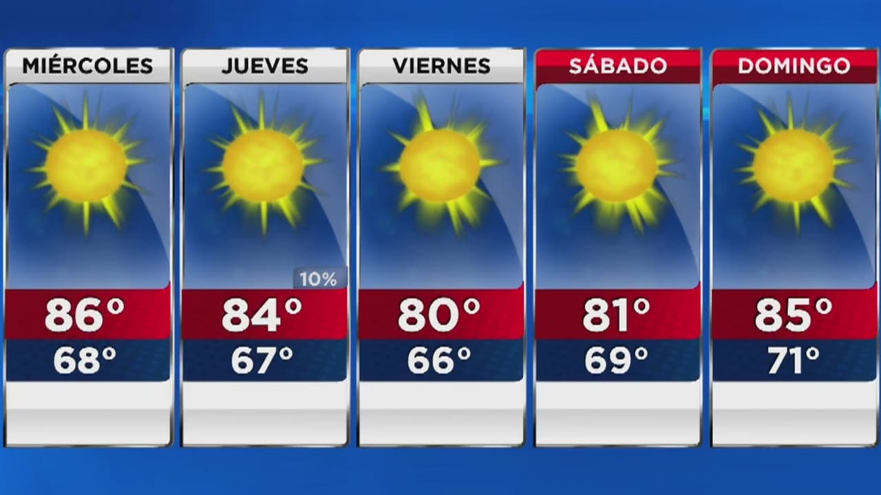 Será un día soleado y cálido en Los Ángeles. La máxima temperatura alcanzará los 86 grados. A partir del jueves el calor comenzará a disminuir paulatinamente, pero el domingo vuelve a aumentar.
