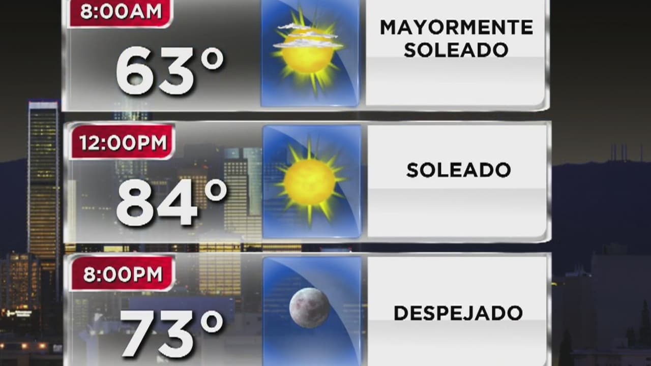 Se mantiene la tendencia de tiempo despejado y cálido en Los Ángeles y sus alrededores. La temperatura máxima será de 84 grados. El viento seguirá calmado.