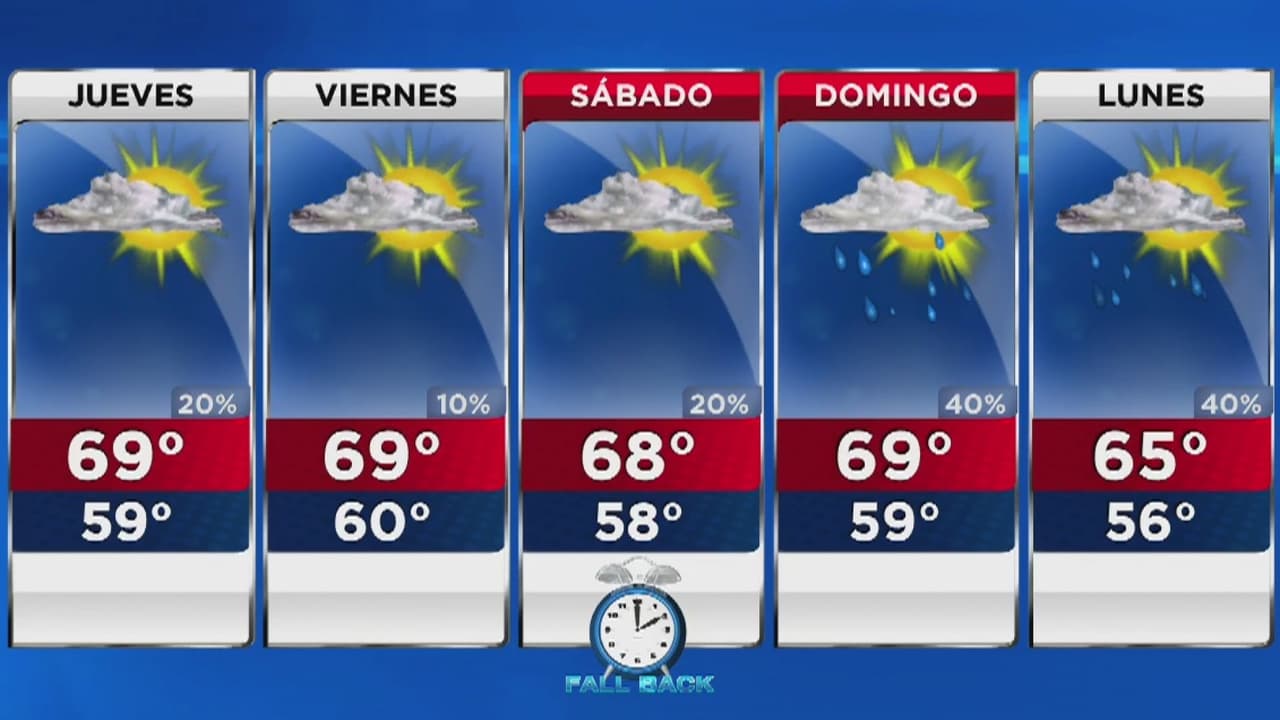 A pesar de la presencia de algunas nubes, será un día mayormente despejado. La temperatura máxima será de 69 grados. Hay baja probabilidad de lluvia.