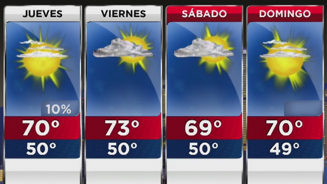 Durante la jornada se alcanzarán temperaturas de hasta 70 grados Fahrenheit, algo normal para la época. Pese a que hay un 10% de probabilidad de precipitaciones, se descartan las condiciones frías en el día.