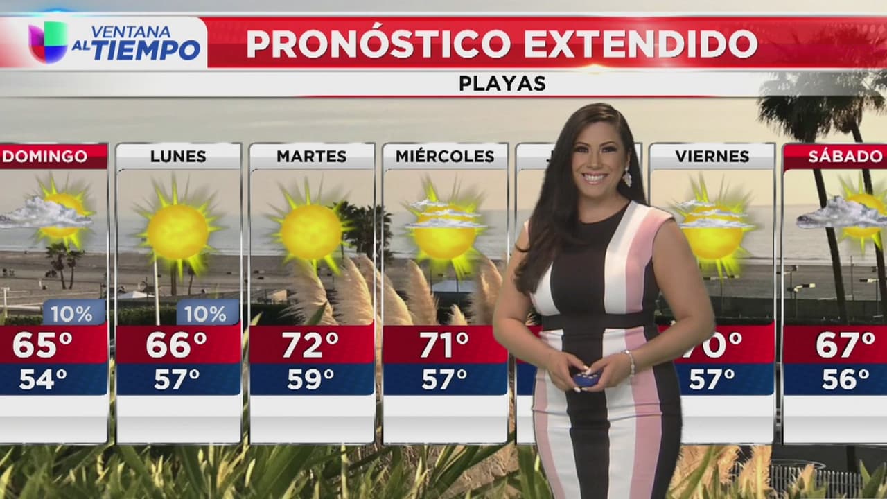 Para este día se esperan temperaturas máximas de 71 grados Fahrenheit, mínimas de 53 y la probabilidad de lluvias es de 10%. Por otro lado, en el este del sur de California continuará vigente una advertencia por fuertes vientos, ya que las ráfagas podrían alcanzar velocidades de hasta 30 mph.