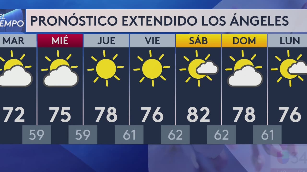 El pronóstico indica que durante la jornada las temperaturas máximas alcanzarán los 72 grados Fahrenheit y las mínimas los 59 grados. No se prevén precipitaciones.