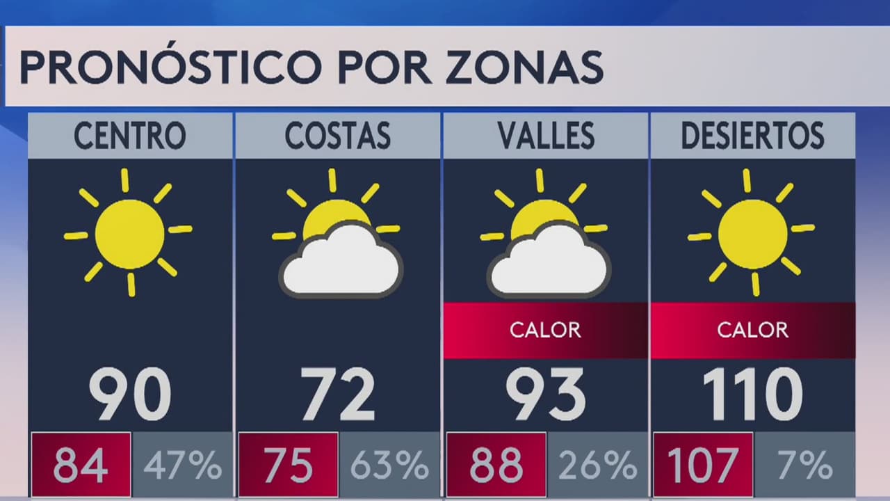 El pronóstico indica que durante la jornada las temperaturas máximas alcanzarán los 90 grados Fahrenheit y las mínimas los 84 grados. No se prevén lluvias.