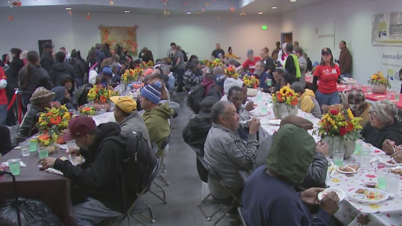 Cientos de desamparados de Los Ángeles disfrutaron de una cena en la víspera de Acción de Gracias