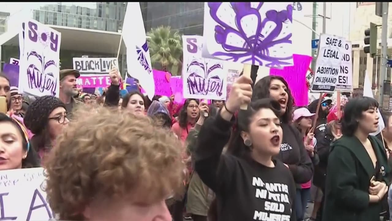 Cientos de mujeres invadieron el centro de Los Ángeles para conmemorar por adelantado el Día Internacional de la Mujer