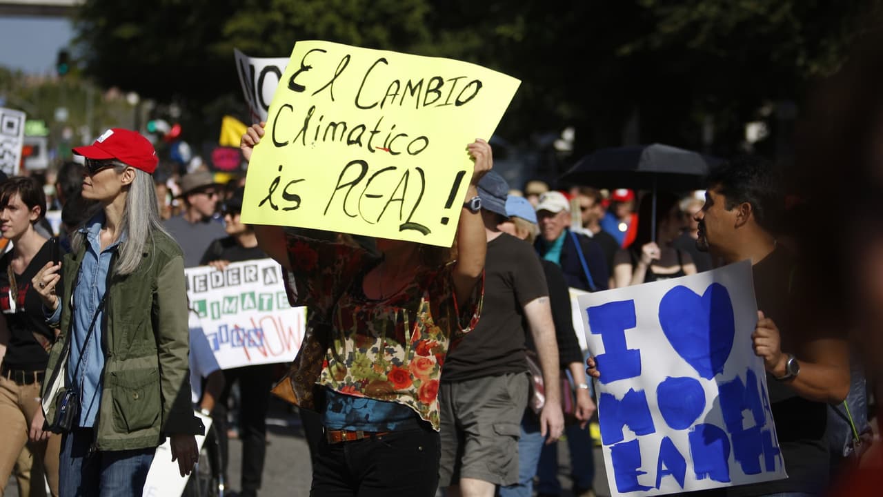 Los manifestantes en Los Ángeles realizaron una obra de teatro y una marcha que finalizó en el centro de la ciudad. Varios de los asistentes afirmaron que la administración Trump tiene la responsabilidad de hacer más para combatir la contaminación ambiental.