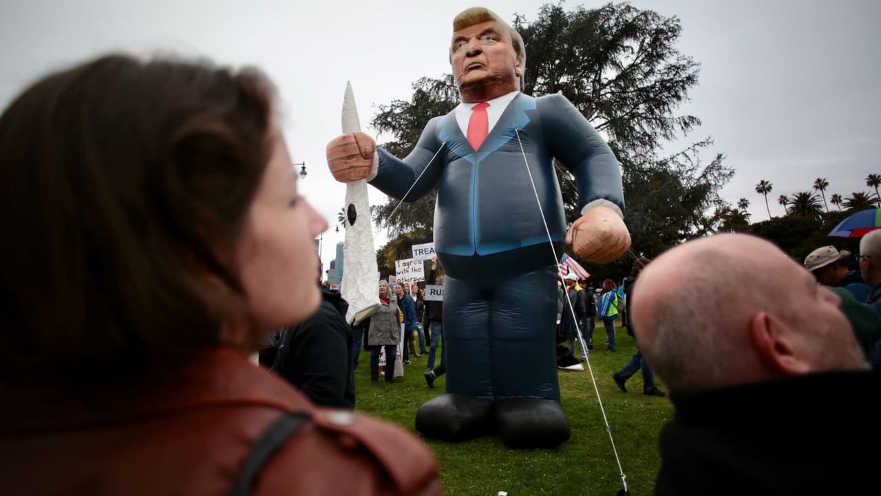 Cientos de personas se congregan en Beverly Hills, California, para protestar por la visita de Trump