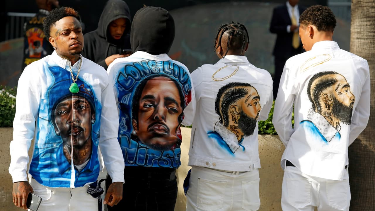 Cientos de personas se reúnen a las afueras de la tienda de Nipsey Hussle para rendirle homenaje a su memoria