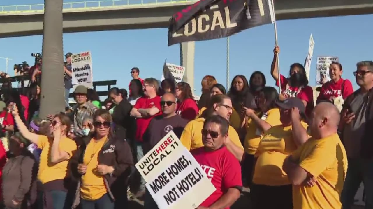Cientos de trabajadores de hoteles protestan cerca del Aeropuerto Internacional de Los Ángeles: esto exigen