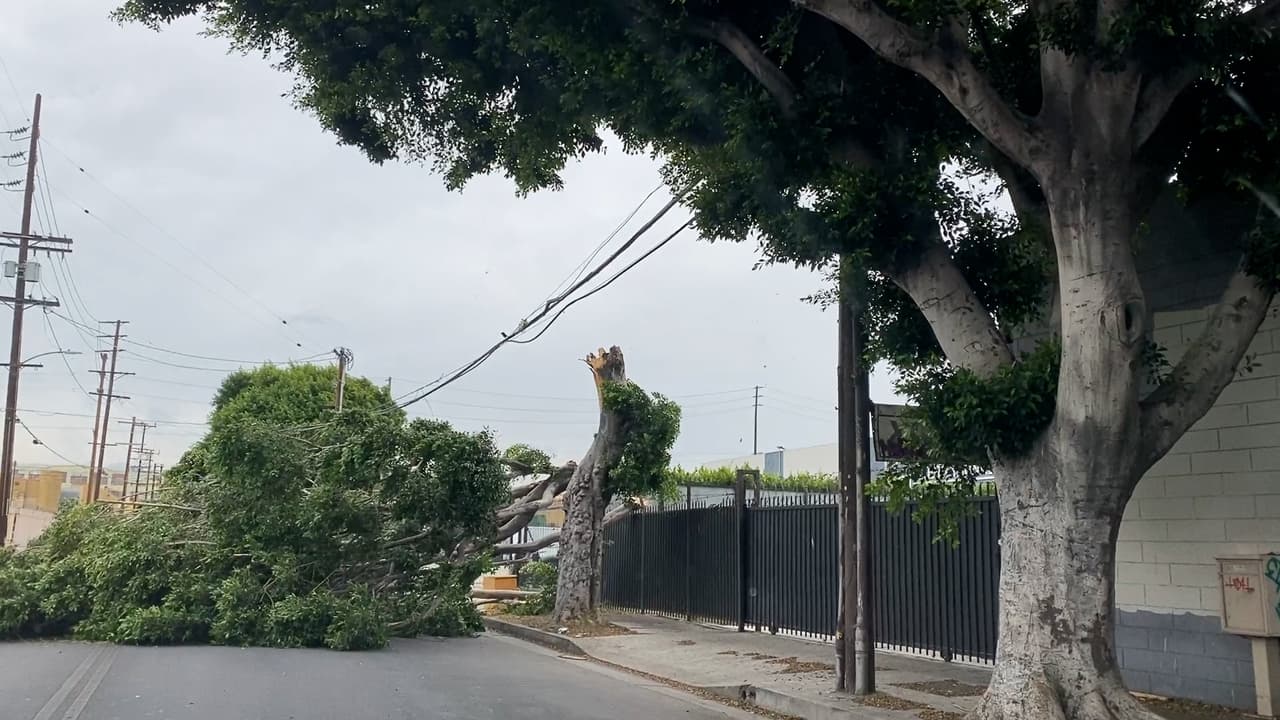 La tormenta tropical Kay tocó suelo en el sur de California. Los vientos fuertes han derribado árboles en el centro de Los Ángeles. El pico de ráfagas de viento se registró en 109 mph en Cuyamaca Peak, San Diego.