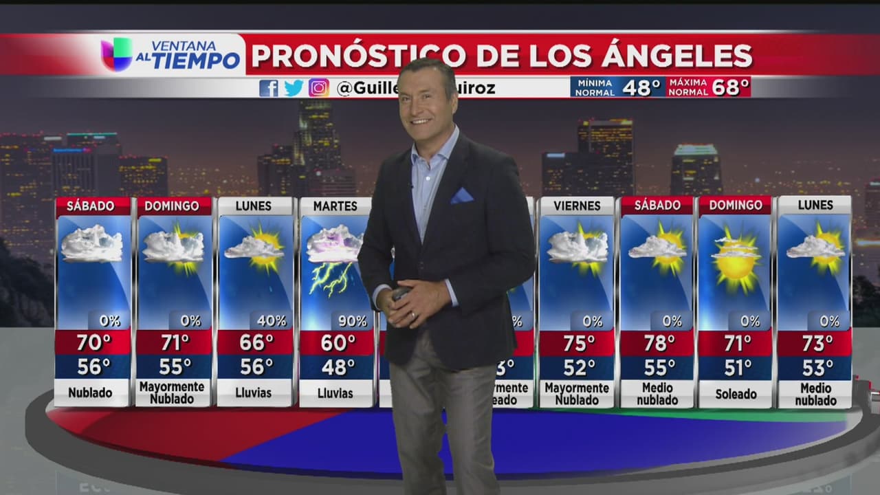 Nuestro meteorólogo Guillermo Quiroz presenta el pronóstico del tiempo para Los Ángeles y sus alrededores. Se esperan lluvias y cielos mayormente nublados.