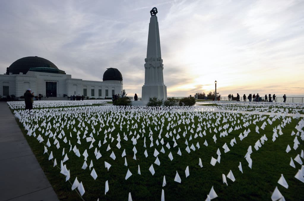 Con 27 mil banderas blancas conmemoran a las víctimas del coronavirus en Los Ángeles