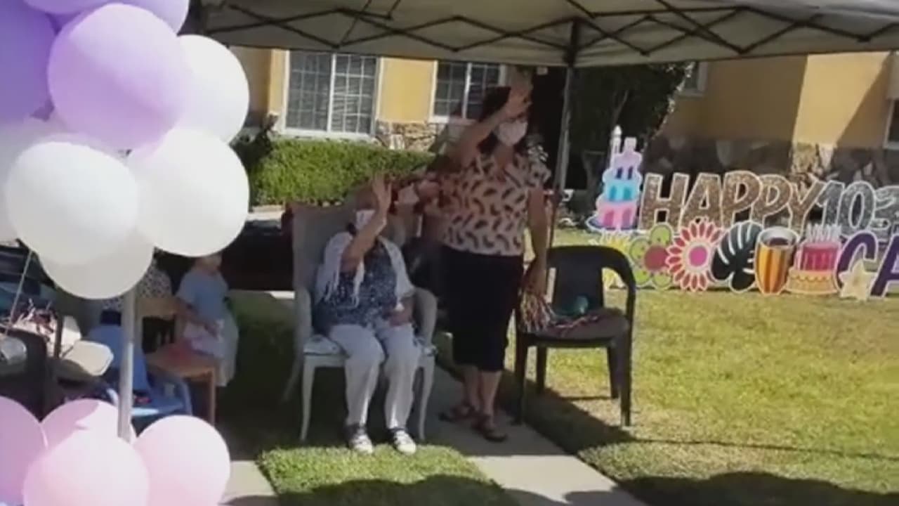 Con globos y una caravana policial: así celebró esta abuelita hispana sus 103 años