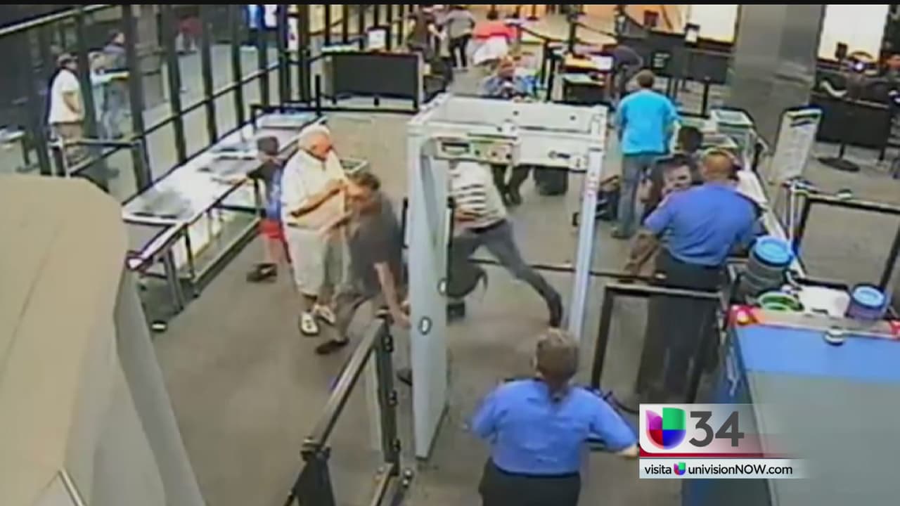 Con machete en mano hombre ataca a agente en un aeropuerto