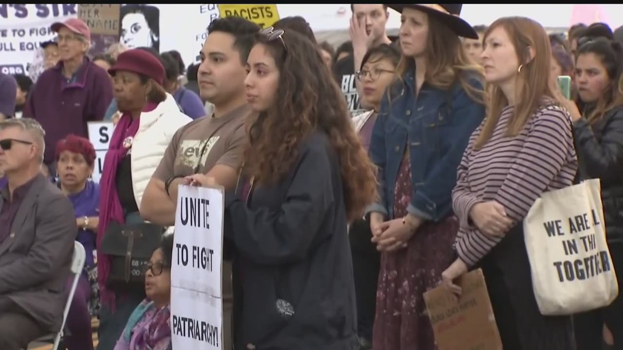 Quienes se sumaron a la movilización en Los Ángeles hicieron un llamado para que haya equidad en los sueldos y se ponga fin al acoso sexual.