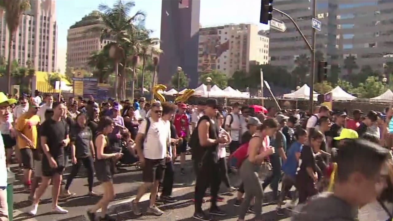 El principal propósito es recaudar fondos para los programas que ayudan a personas portadoras del virus. Los participantes se dieron cita en el centro de Los Ángeles y recorrieron al menos seis millas.