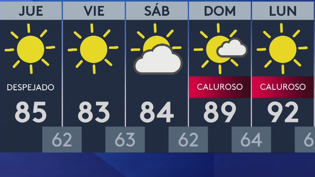 El pronóstico indica que las temperaturas en el área se ubicarán por encima de los 80 grados Fahrenheit durante el transcurso de la jornada. Se prevé tiempo caluroso para el próximo fin de semana, por lo que no se descarta que se comiencen a emitir alertas por estas condiciones meteorológicas.