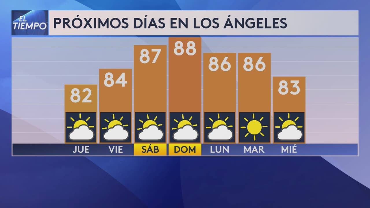 Se espera neblina en horas de la mañana, sol en la tarde y temperaturas que alcancen un máximo de 82 grados Fahrenheit en Los Ángeles y sus alrededores.