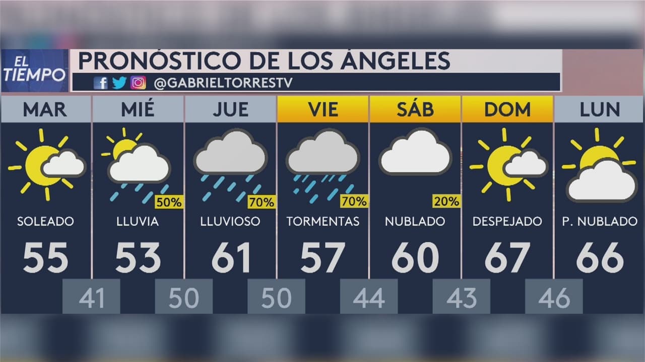 Se espera una temperatura mínima de 41 grados Fahrenheit y una máxima de 55 grados. No hay probabilidad de lluvia para este día y se prevé un miércoles con algunas precipitaciones.