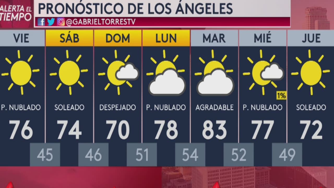 Según el pronóstico, las temperaturas máximas llegarán a los 76 grados Fahrenheit y las mínimas rondarán los 45 desde tempranas horas. Áreas como Lancaster y Palmdale estarán bajo alerta por helada intensa hasta las 9:00 am de esta jornada.