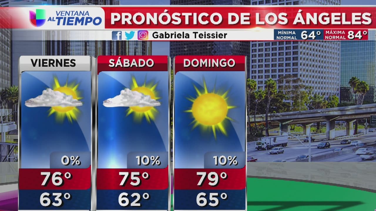 Se esperan cielos parcialmente nublados y que las temperaturas estén entre los 63 y 76 grados Fahrenheit en Los Ángeles y sus alrededores.