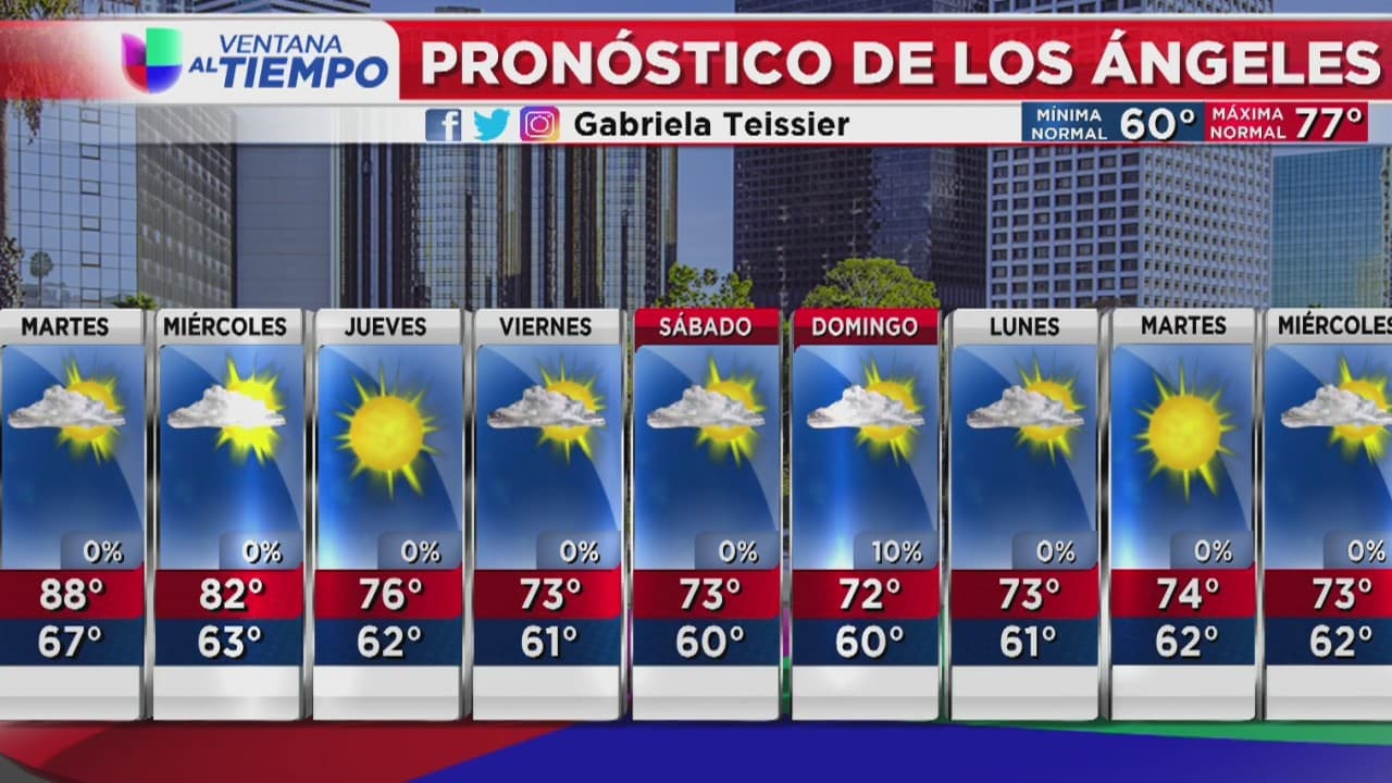 Se esperan cielos parcialmente nublados y que las temperaturas estén entre los 67 y 88 grados Fahrenheit en Los Ángeles y sus alrededores.