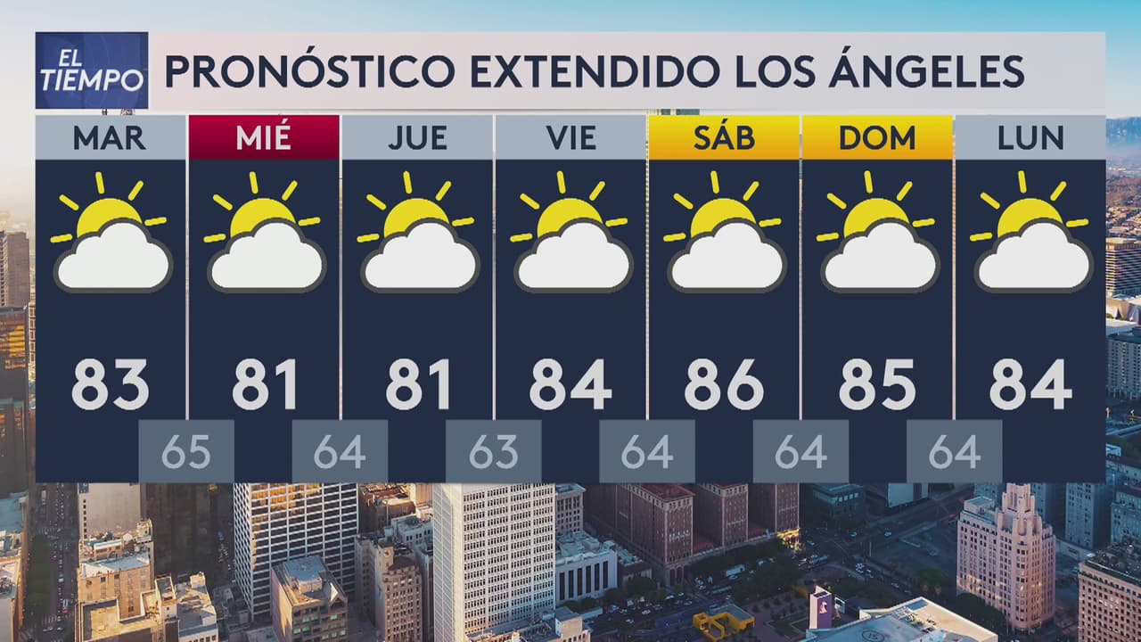 Se esperan cielos parcialmente nublados y que las temperaturas estén entre los 65 y 83 grados Fahrenheit en Los Ángeles y sus alrededores. No se pronostican lluvias durante el día.