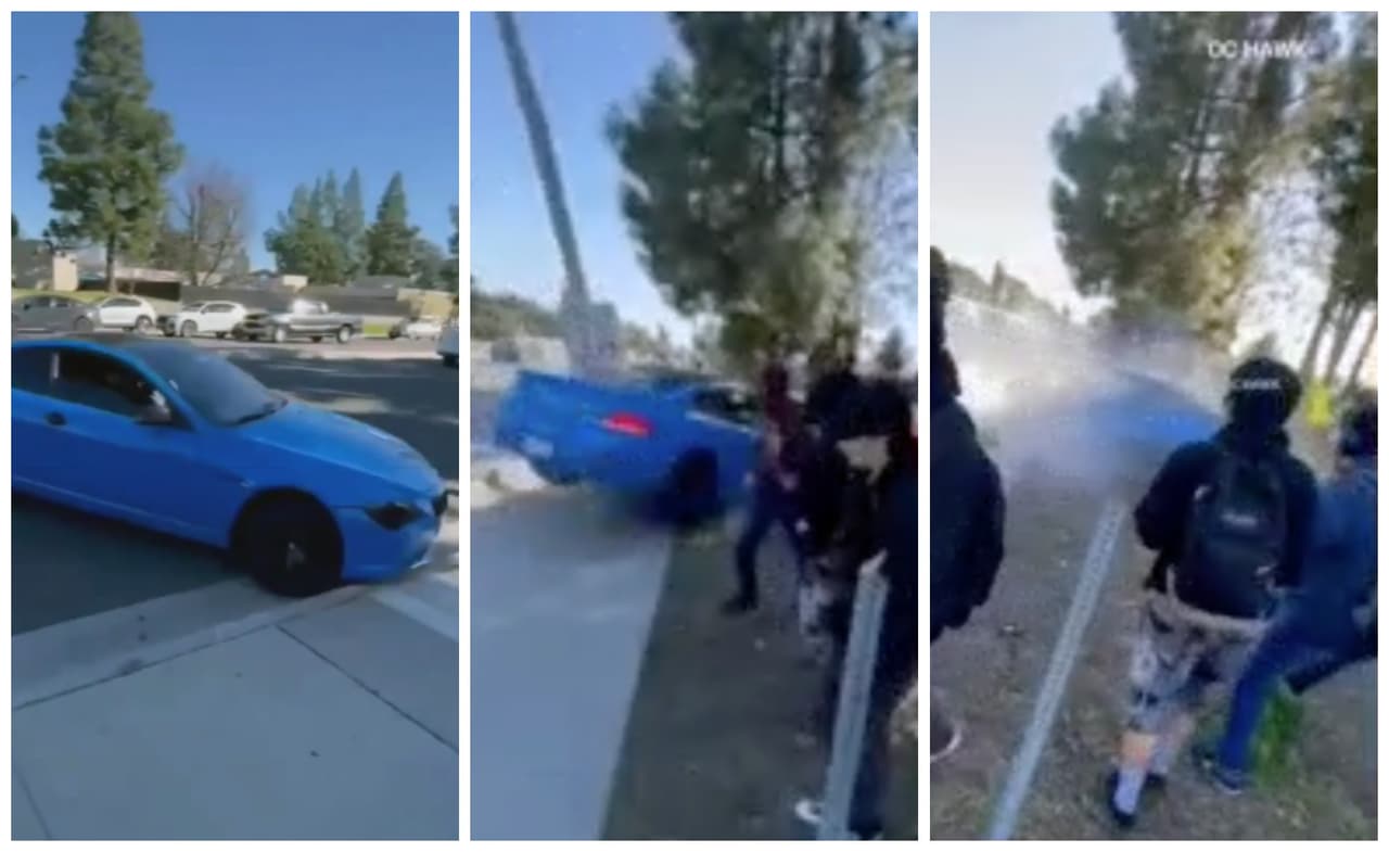Grabado quedó el momento en que un conductor perdió el control de su auto y se estrelló contra un poste del tendido eléctrico, este martes 13 de de febrero, en la ciudad de Anaheim, en el condado de Orange. El accidente, en el que resultaron heridos dos estudiantes, se reportó a las 2:30 p.m., en el State College Drive, cerca de la avenida Wagner, confirmó el Departamento de Policía de Anaheim. Horas antes, otro conductor había sido captado haciendo donas y otras maniobras en la misma zona.