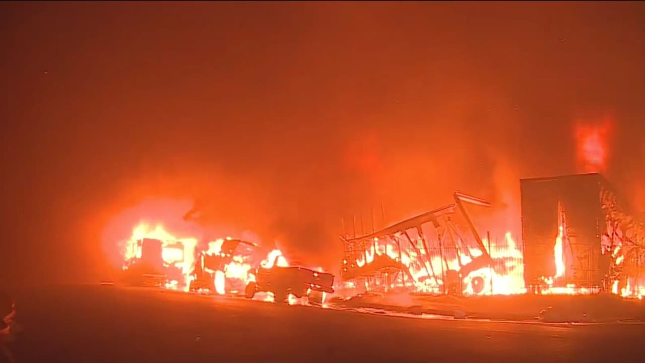 Mario Tama/Getty ImagesLas llamas se desataron a las 12:22 a.m. del sábado 11, en la cuadra 1700 de la calle 14th Este, en Los Ángeles. Su origen fue en dos lotes de almacenamiento, en la zona industrial bajo la autopista 10.