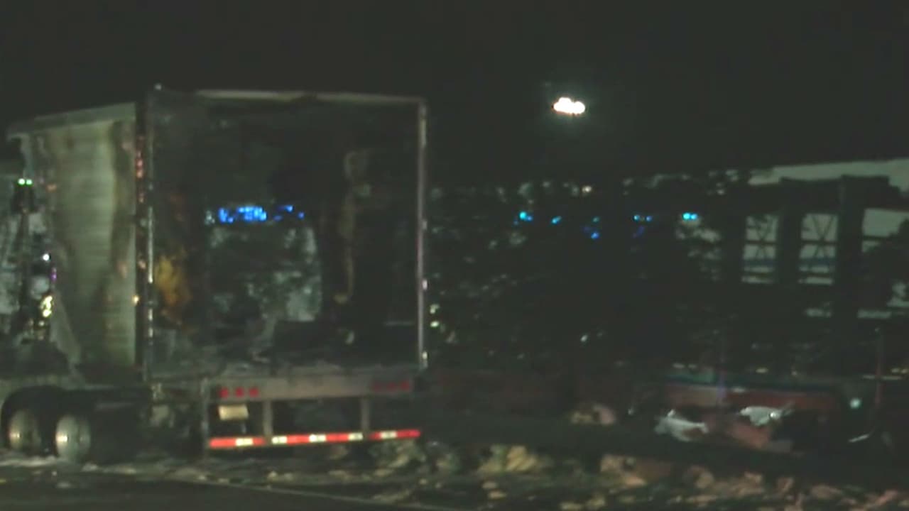 El accidente ocurrió un poco antes de las 4:00 de la mañana, por causas que son investigadas por la policía. El tráiler quedó partidos en dos atravesado en la autopista a la altura de Sun Valley. El conductor sufrió lesiones menores y el tráfico está afectado.