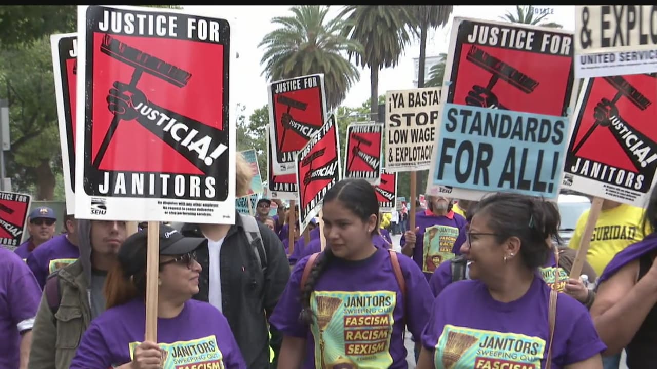 Conserjes y trabajadores de limpieza de California exigen mayor seguridad y mejoras laborales