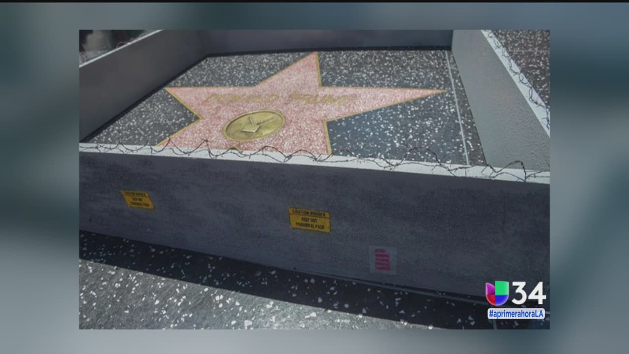 Un muro de concreto de seis pulgadas con rótulos parecidos a los de la frontera apareció en la estrella de Hollywood de Donald Trump.