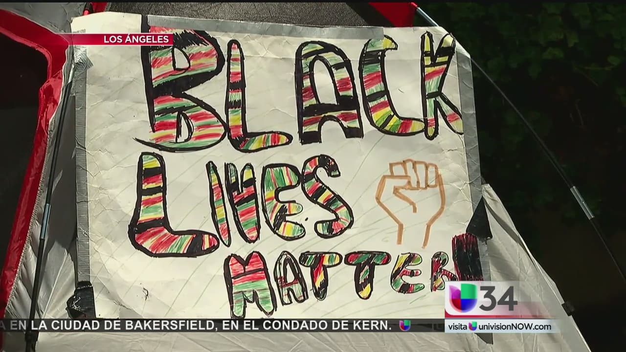 Activistas del grupo “Black Lives Matter” continúan su protesta en el City Hall de Los Angeles exigiendo una reunión con el alcalde.