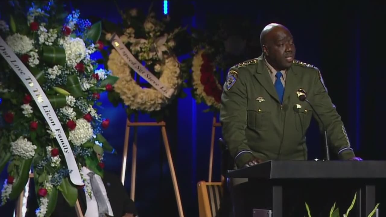 Steve Licon, agente de la Patrulla de Caminos de California (CHP), perdió la vida el pasado 6 de abril en un accidente en la carretera interestatal 15. Familiares, compañeros y miembros de la comunidad se dieron cita en la iglesia Harvest Christian Fellowship en Riverside para rendirle tributo.