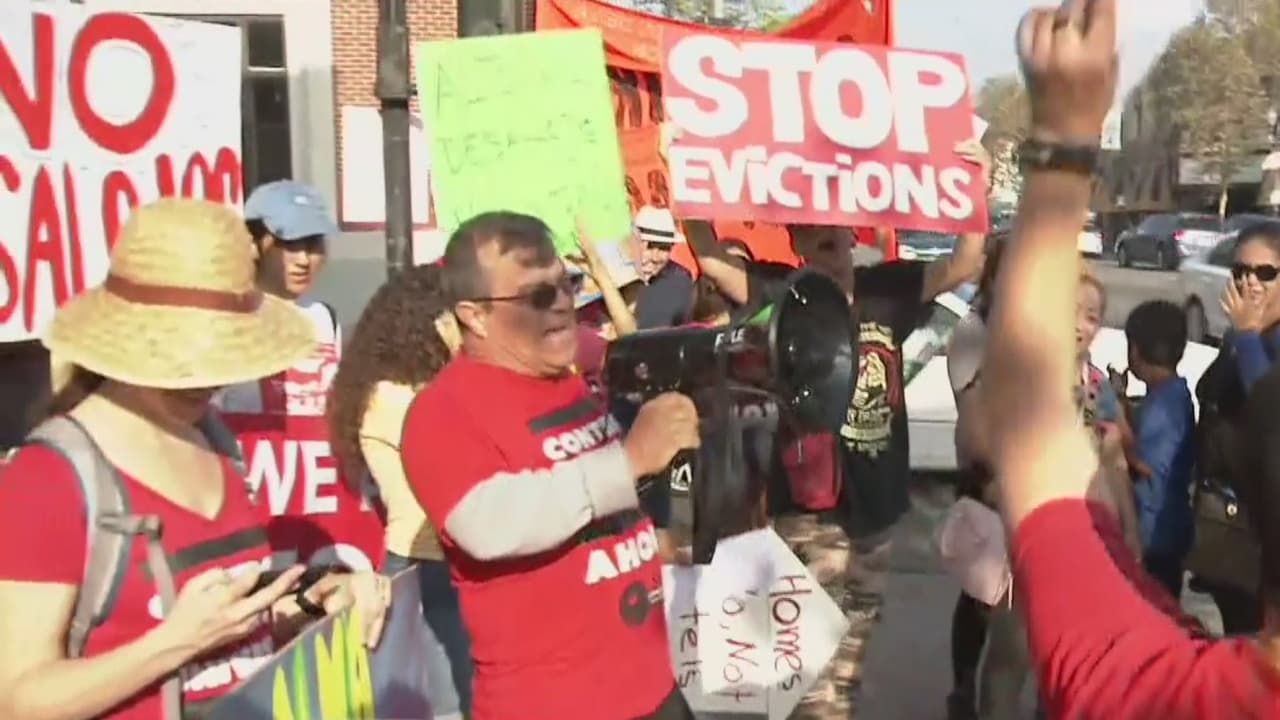 Decenas de inquilinos se manifiestan en Highland Park en contra de los desalojos masivos