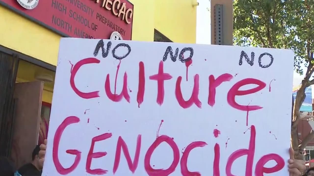 La pacífica manifestación le pidió al Distrito Escolar de Los Ángeles que respete los derechos de las comunidades indígenas y renueve el permiso para que la escuela pueda seguir operando.