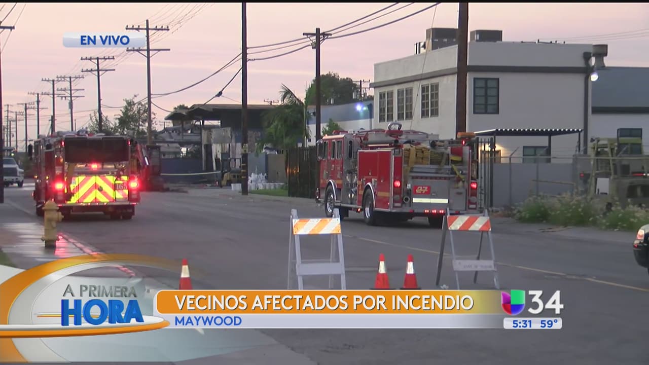 El incendio registrado en Maywood finalmente fue contenido, sin embargo, los bomberos y equipos especializados en materiales peligrosos permanecen ahí para evaluar la situación.