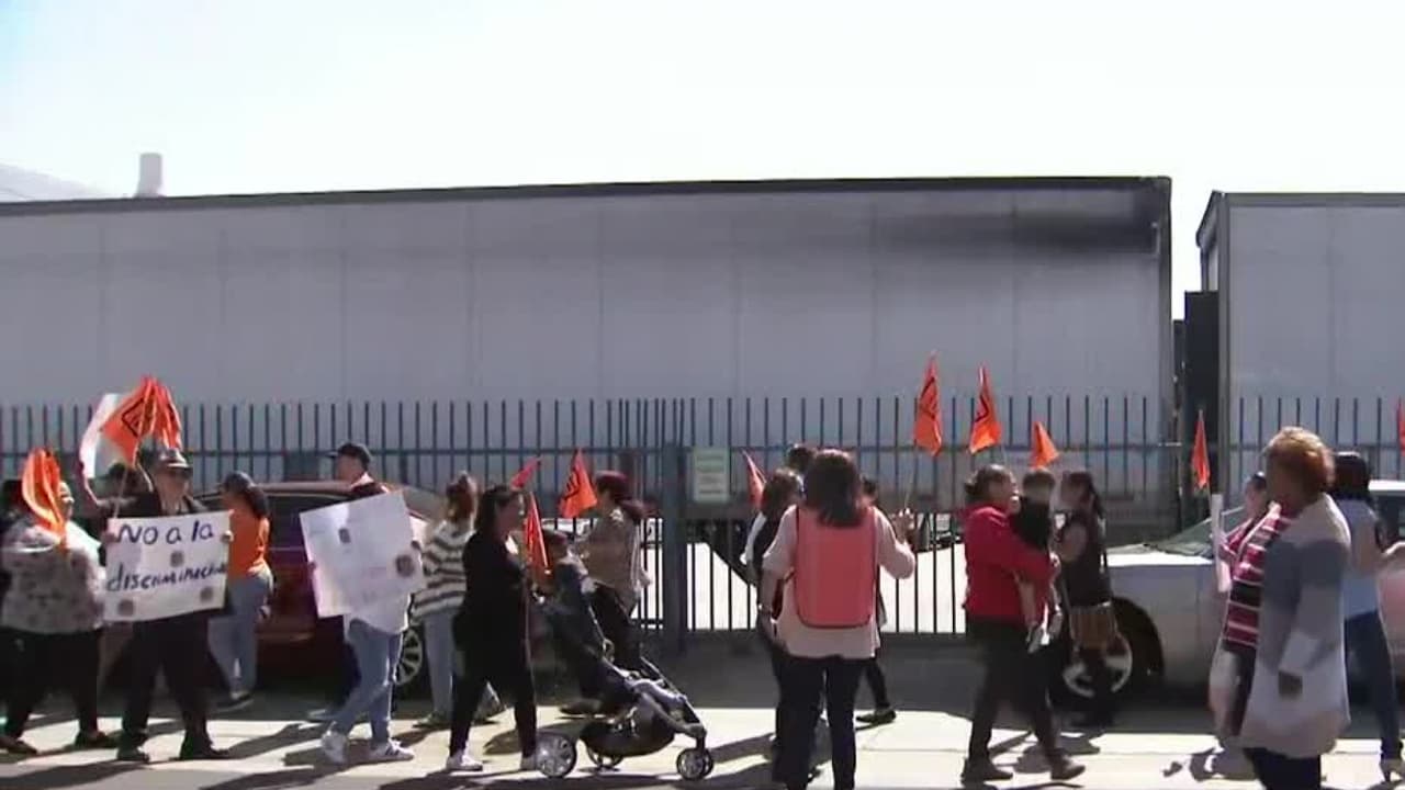 Decenas de trabajadores protestan ante una compañía de California por un masivo despido