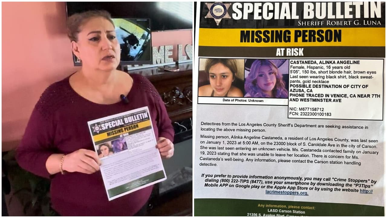 La madre asegura que después de esa llamada, que se registró desde un número desconocido, el Departamento del alguacil del Condado de Los Ángeles comenzó una exhaustiva investigación y publicaron en su boletín de personas desaparecidas la foto y la descripción de Alinka Castañeda.