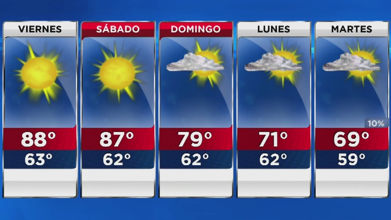 La temperatura máxima hoy será de 88 grados, mucho más baja que al inicio de la semana. El fin de semana seguirá con sensación cálida, pero moderada. El lunes habrá una significativa disminución del calor.