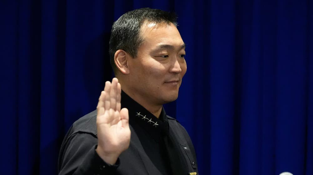 Dominic Choi se convirtió en jefe del Departamento de Policía de Los Ángeles este viernes, ante la mirada de sus padres, Joseph y Jin Choi. Su esposa y sus tres hijas también estaban a su lado.