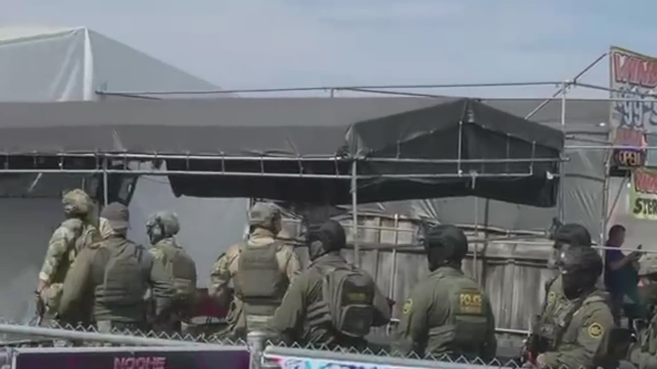 Los elementos de migración ingresaron al lugar pidiendo identificación tanto a vendedores como clientes, mientras eran apoyados por un helicóptero, así como por efectivos de la Marina de los EE. UU.