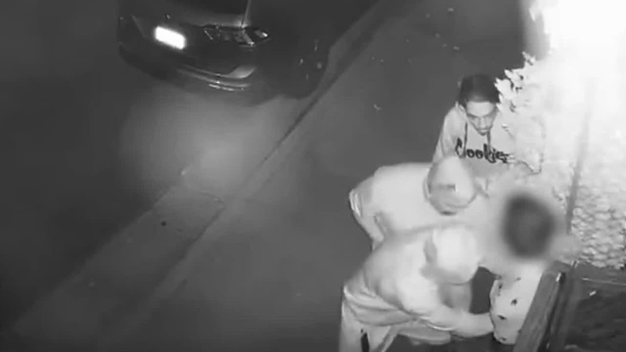 Una cámara de seguridad captó el asalto que sufrió un hombre el pasado 19 de julio, mientras caminaba por el bloque 800, de la calle Larrabee. Eran las 12:38 de la mañana, estos tres individuos bajaron de una SUV y le apuntaron con pistolas y un rifle. Los sospechosos le robaron la billetera y el teléfono celular. El Departamento el Sheriff de Los Ángeles pide ayuda para identificarlos.