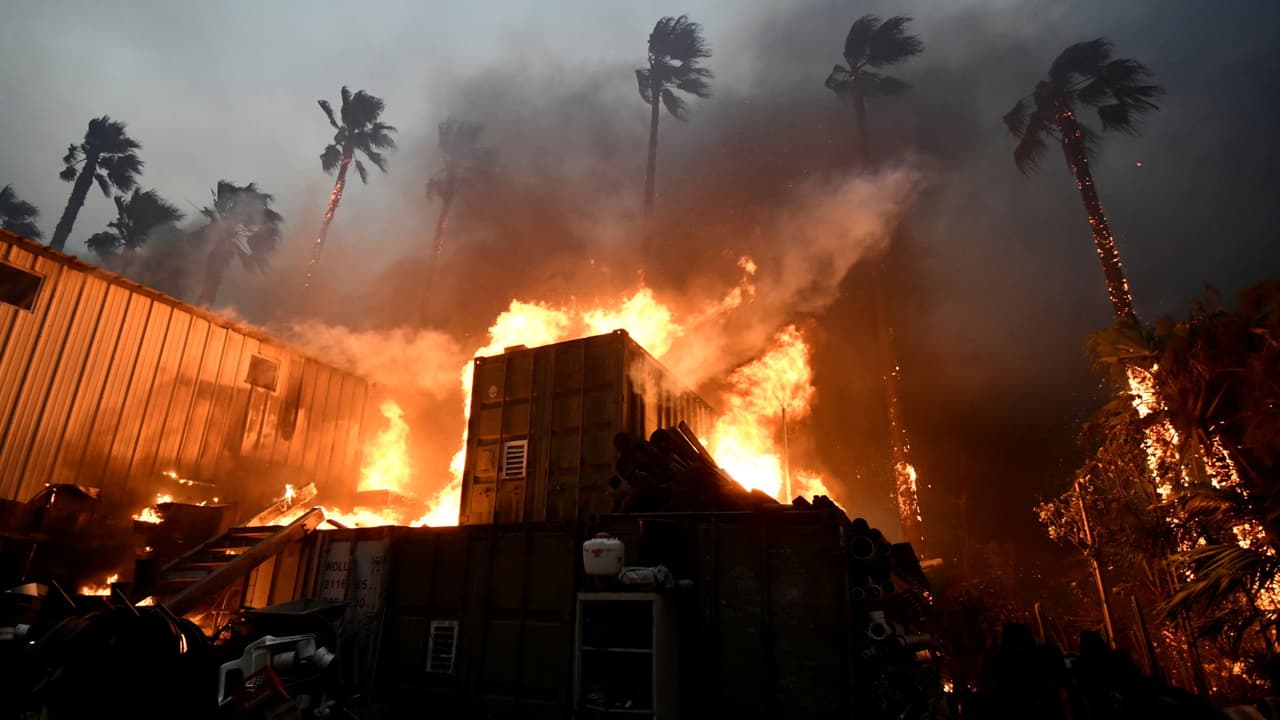Según las autoridades locales, las condiciones climáticas de resequedad y fuertes ráfagas de los vientos de Santa Ana han empeorado la situación y ponen en riesgo a las comunidades que huyen de sus hogares.