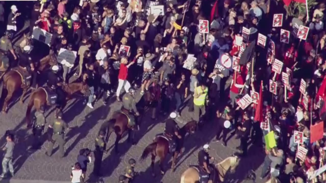 Dos marchas, una de extrema derecha y otra en apoyo a inmigrantes, se dan cita en Laguna Beach